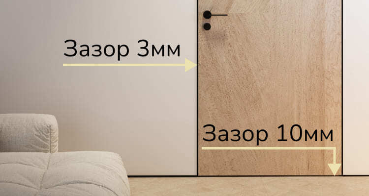 Минимальный зазор - 3 мм, низ двери - 10 мм