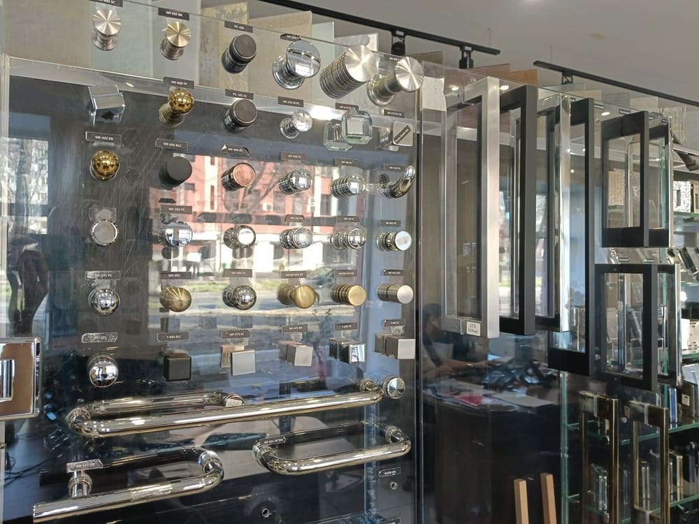 По адресу г.Казань, ул. Вишневского д. 11, можете посмотреть варианты перегородок из стекла, определиться с цветом, фурнитурой и дизайном Вашей перегородки. Фурнитура есть в наличии