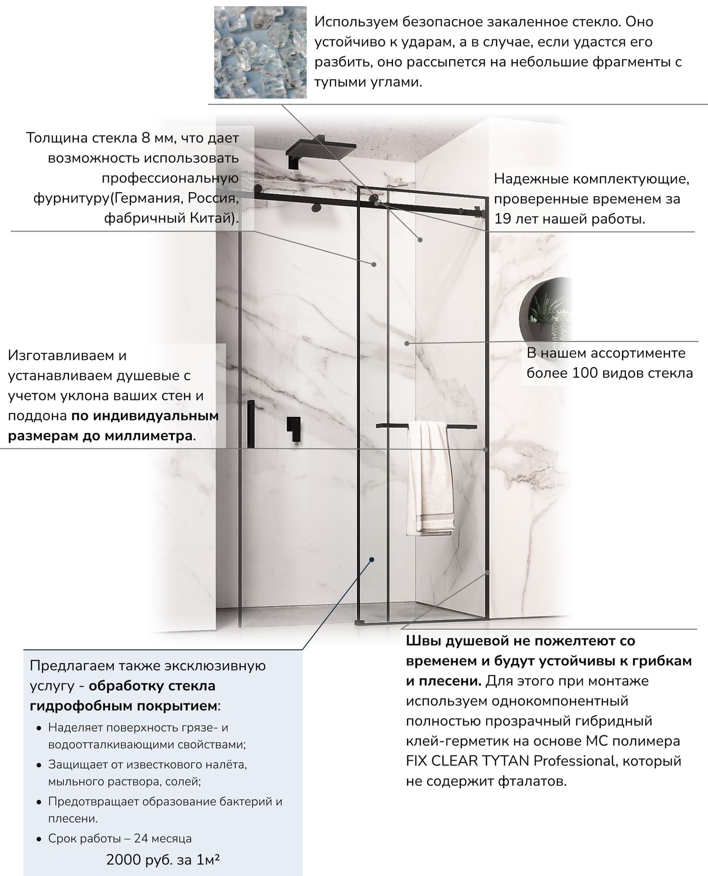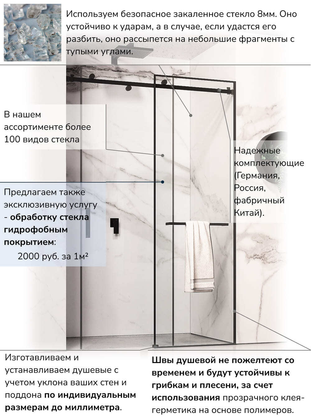 | Надежное закаленное стекло 8мм | ||