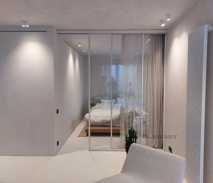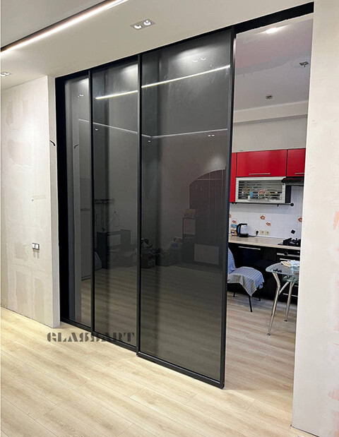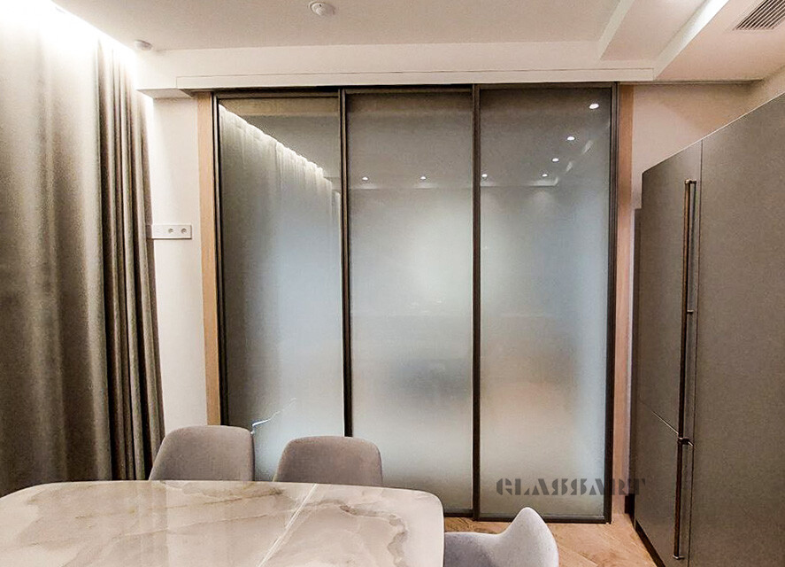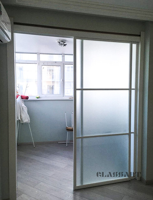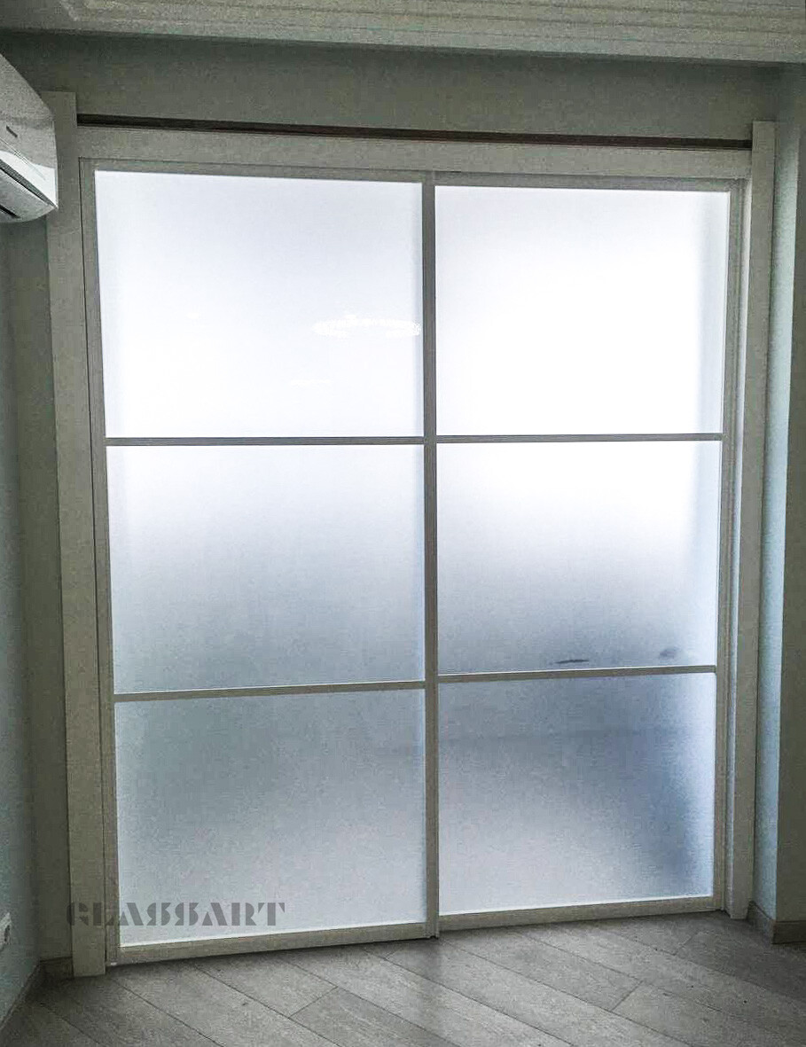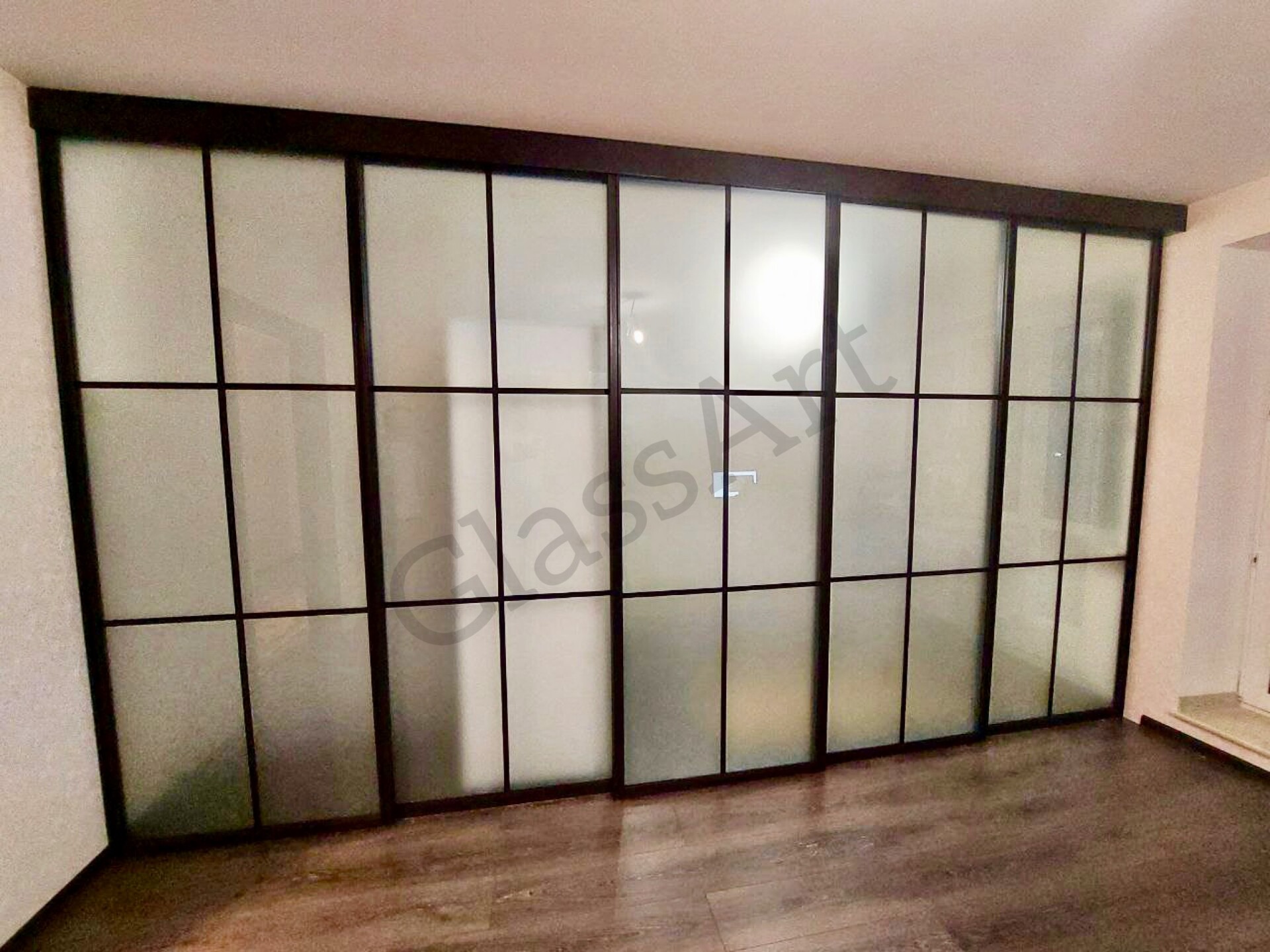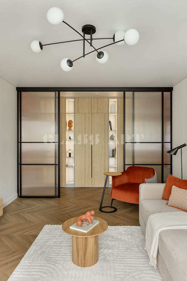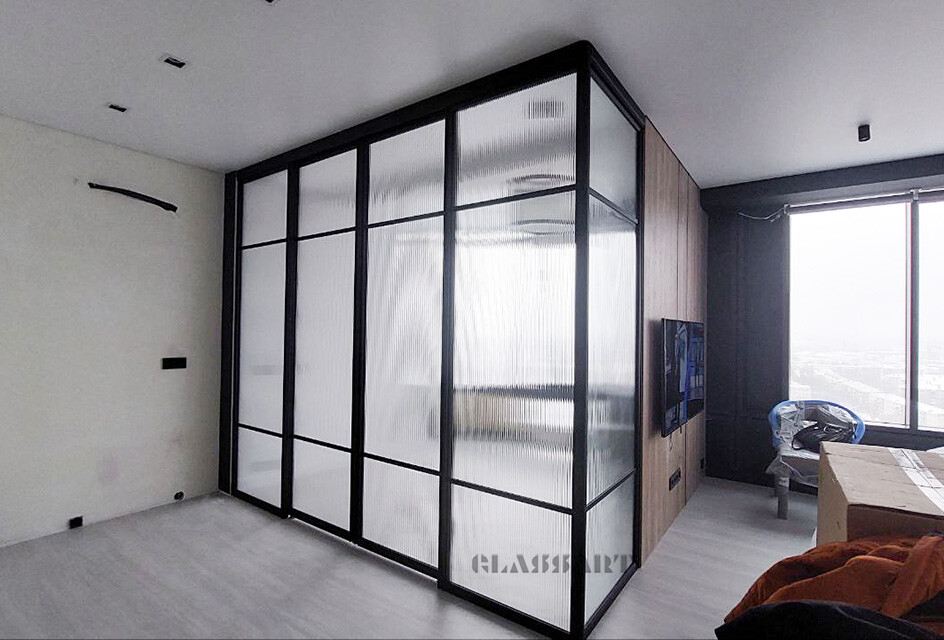 Раздвижная межкомнатная перегородка с рифленым стеклом для зонирования