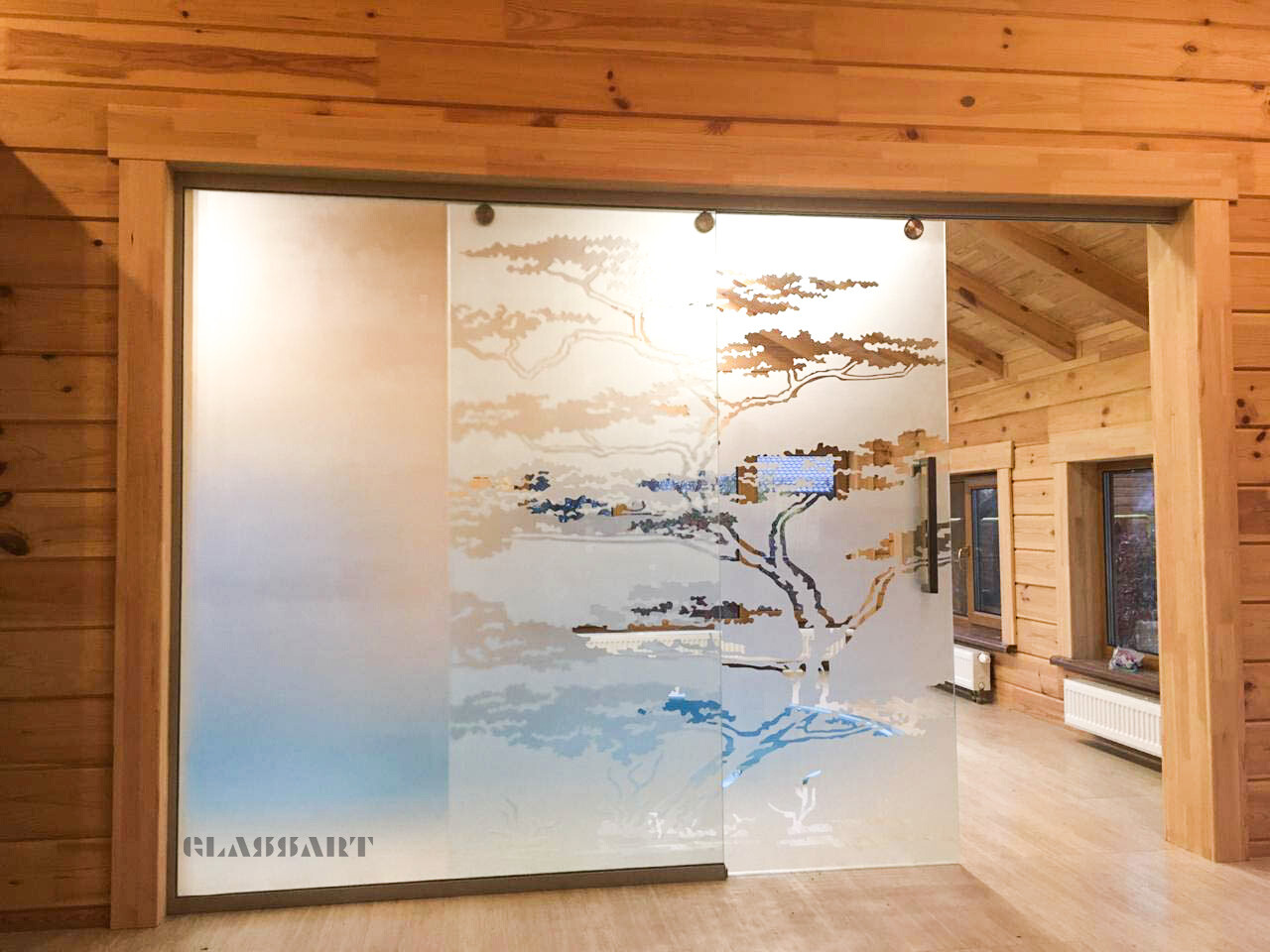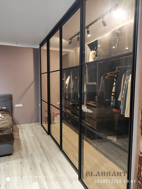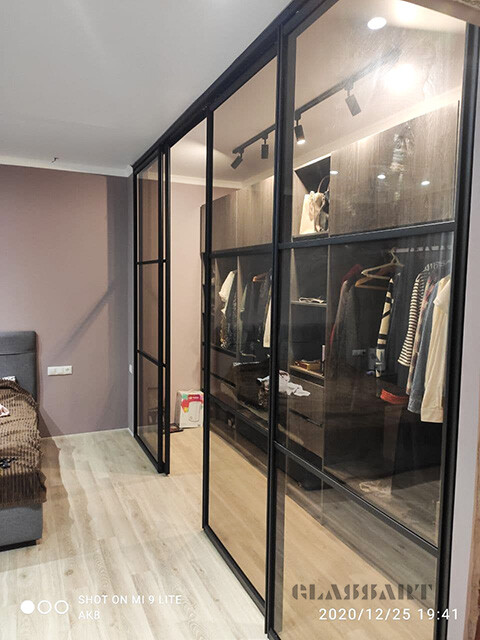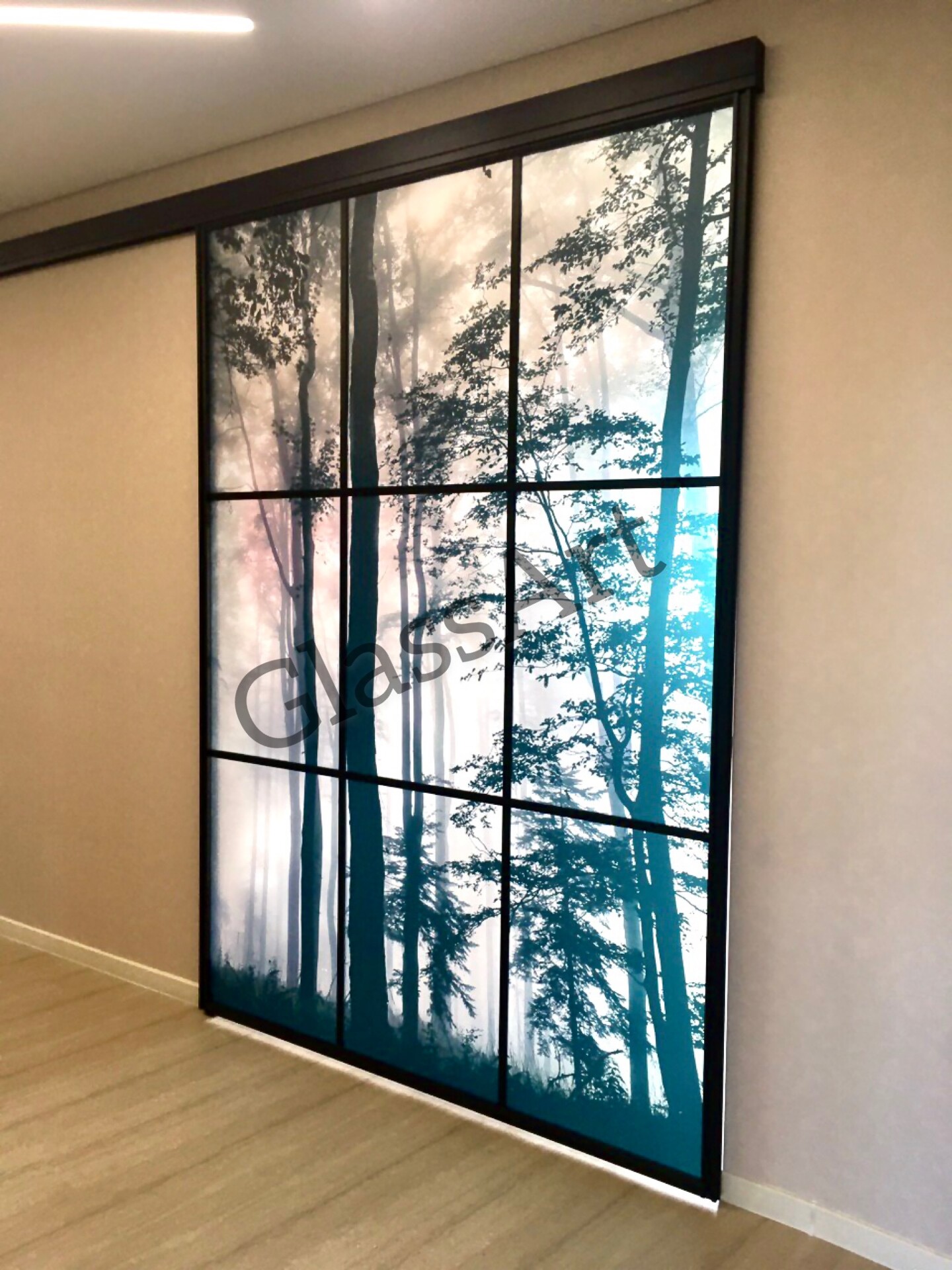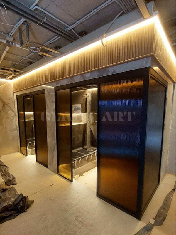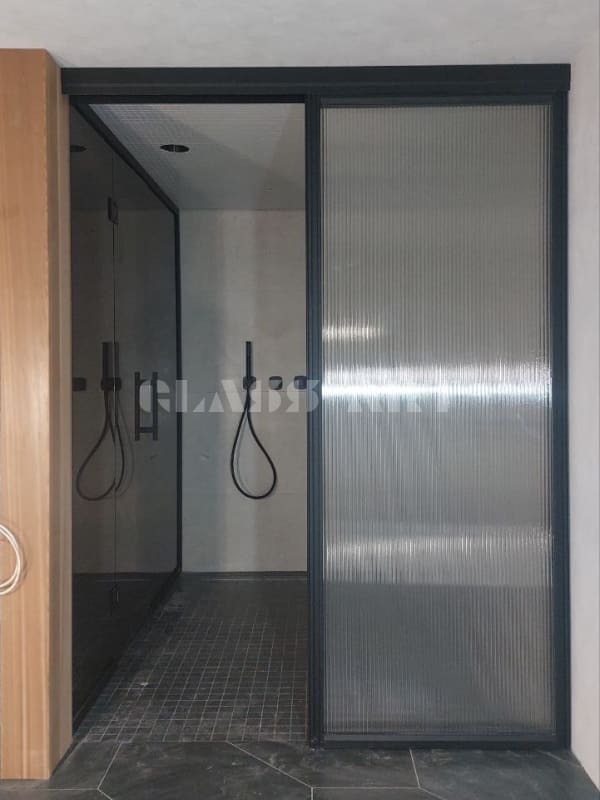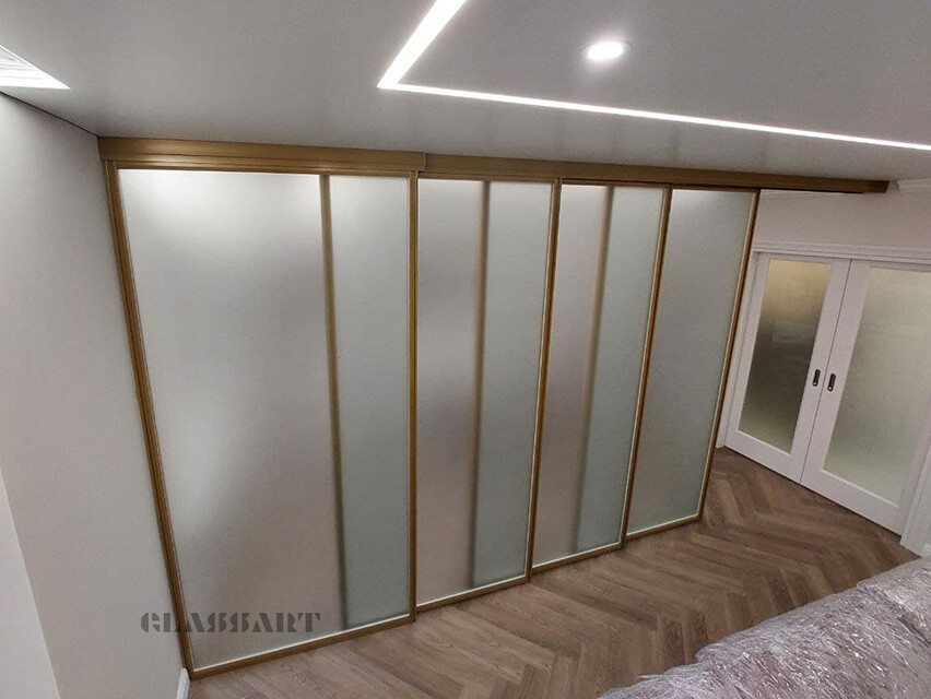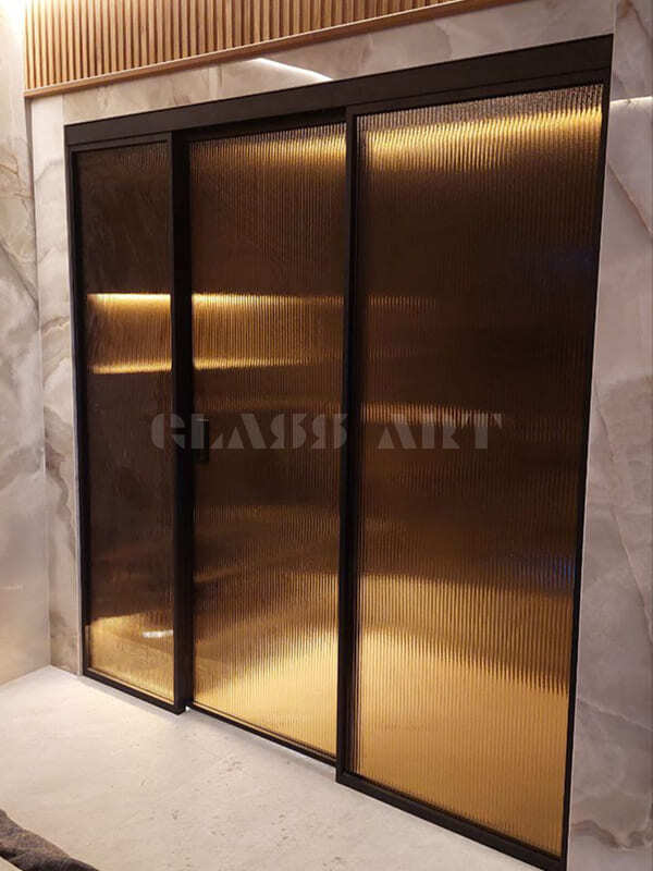 Раздвижная межкомнатная перегородка с рифленым стеклом для зонирования