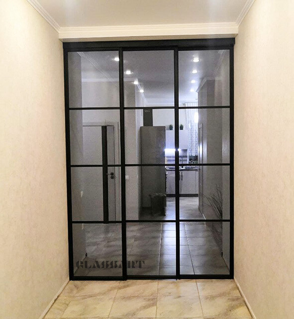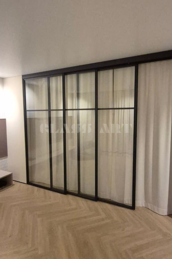 Раздвижная перегородка в стиле лофт с синхронным открыванием дверей
