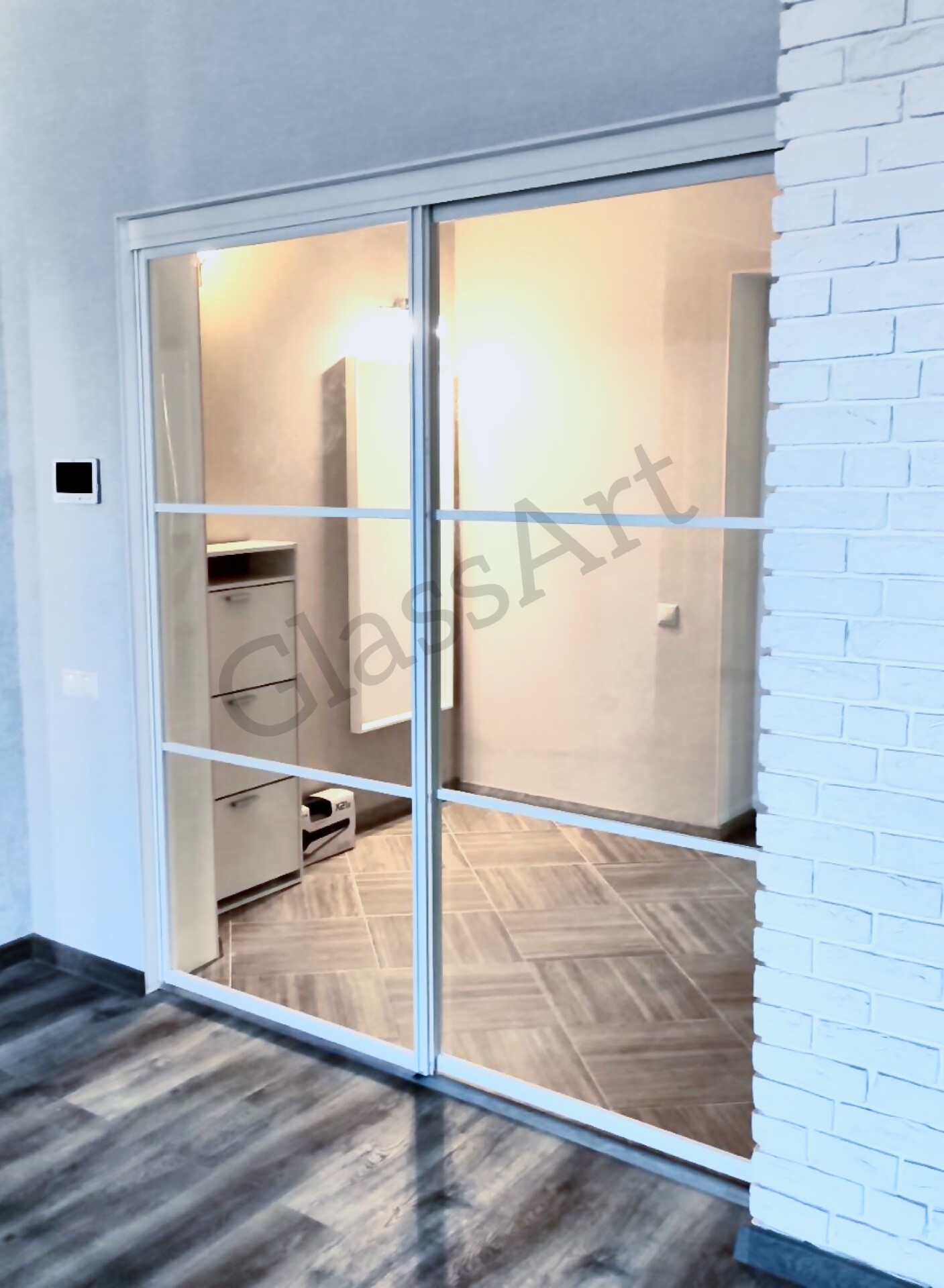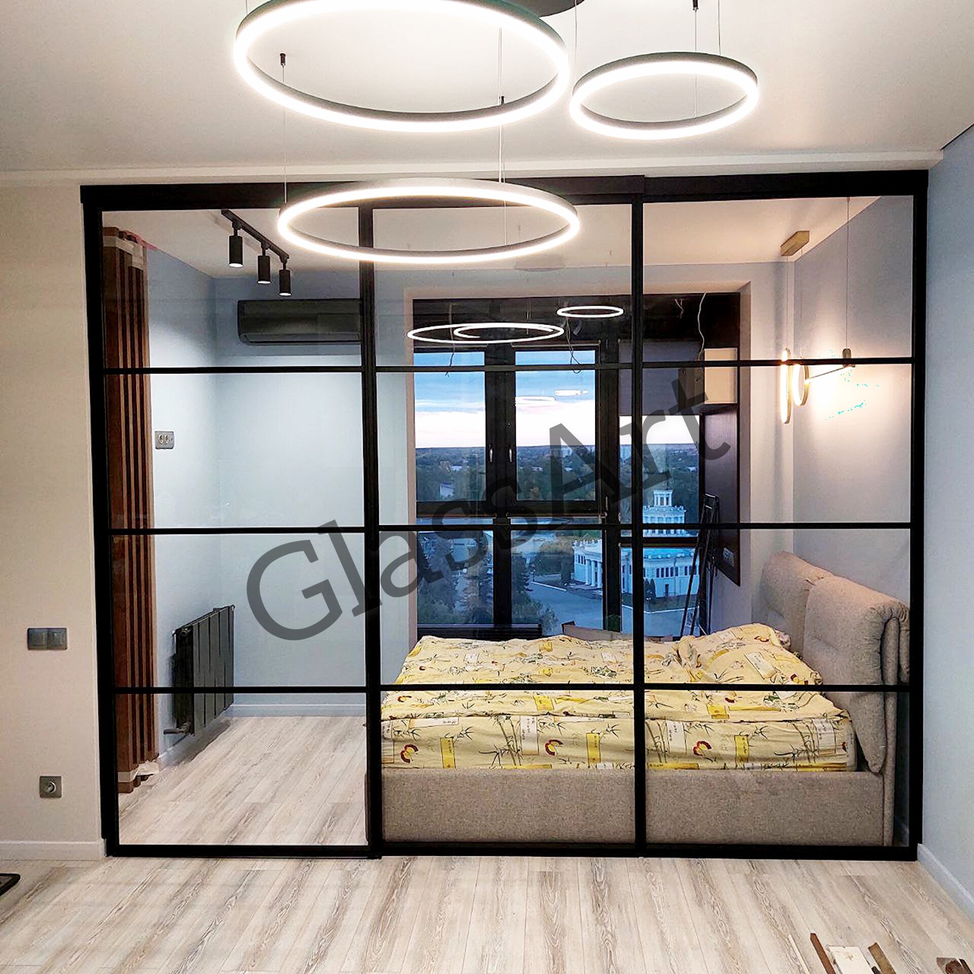 Лофт перегородка раздвижная c синхронным открыванием двери