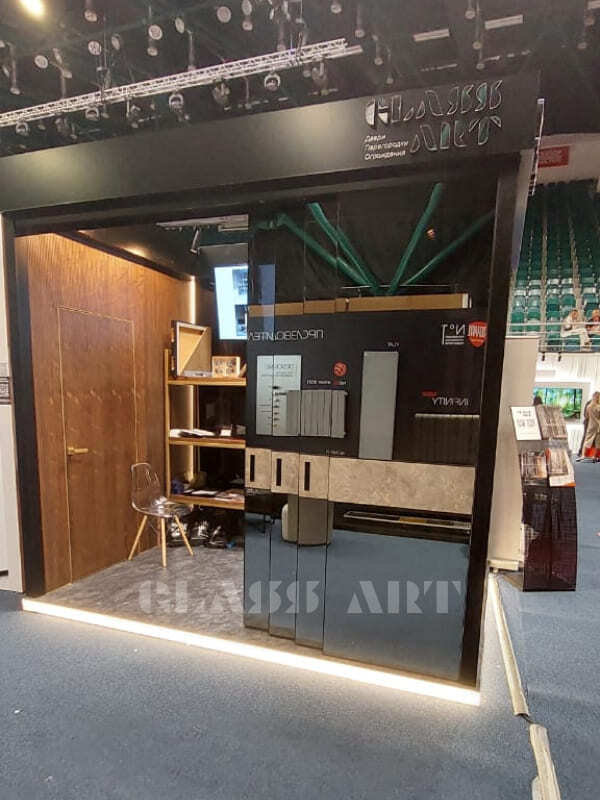 Облицовка полотен: комбинированное HPL + стекло с зеркальным эффектом в оттенке "графит"
