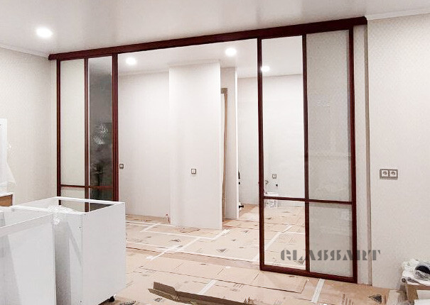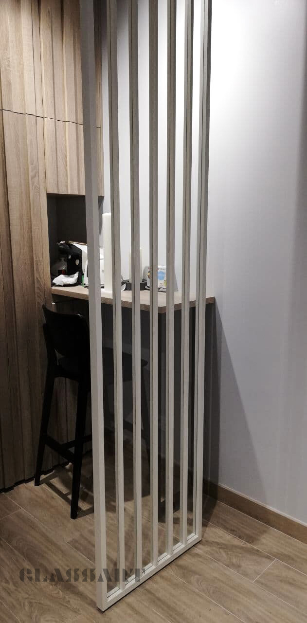 Межкомнатная каскадная (телескопическая) перегородка для зонирования кухни и гостиной