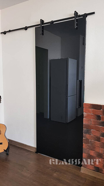 Раздвижная перегородка в стиле лофт, на подвесной системе Росла (Rosla), с одной раздвижной дверью.