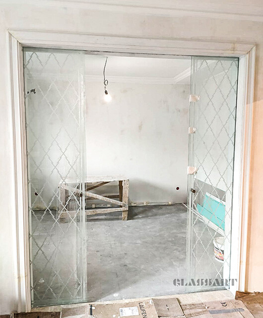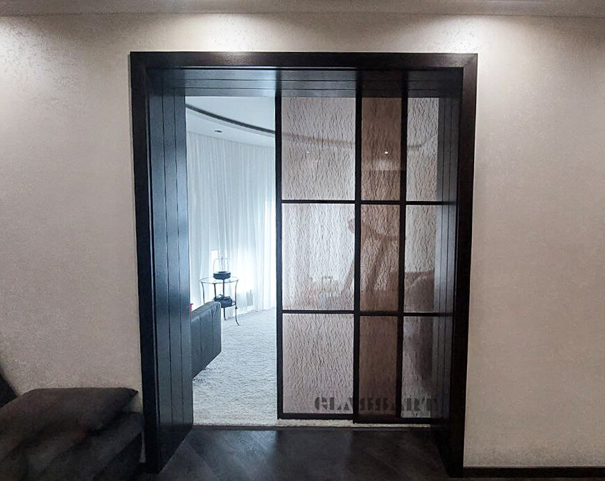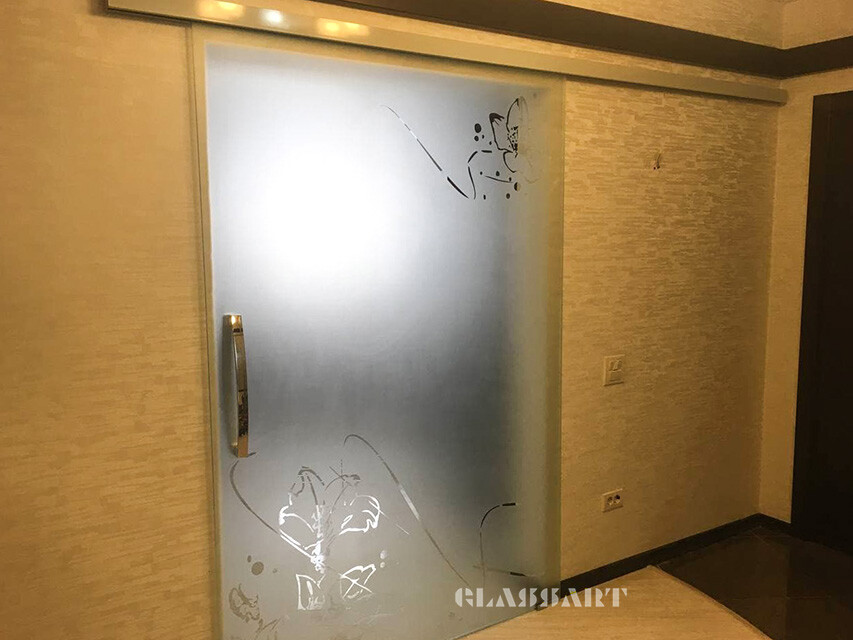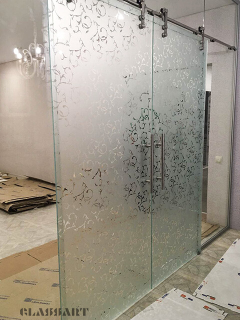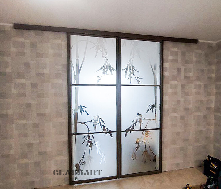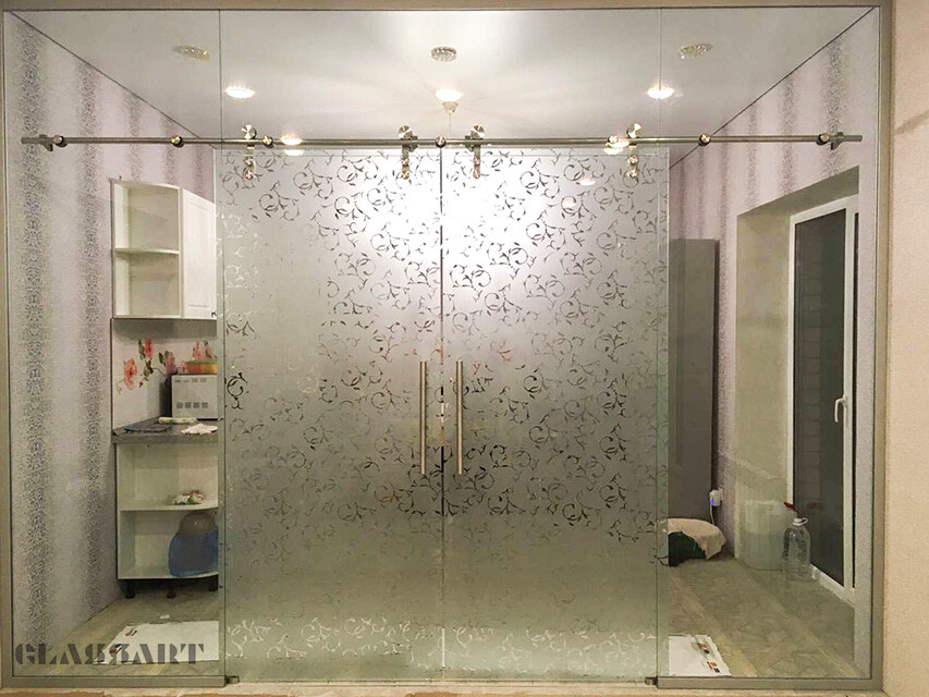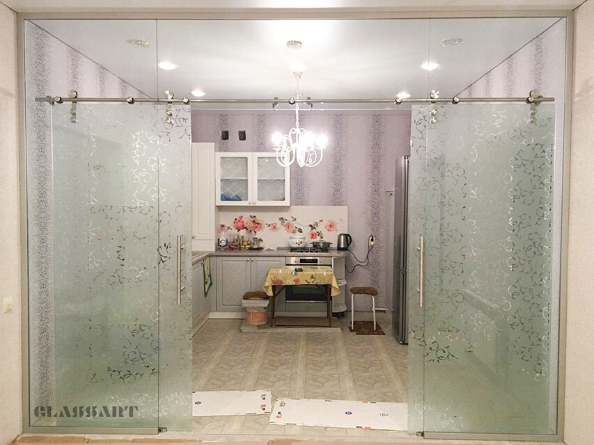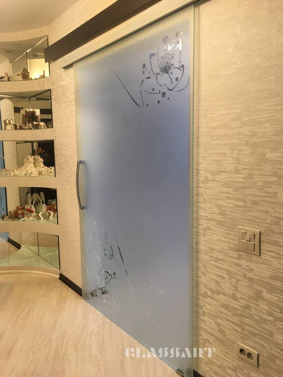 Наиболее популярны сегодня межкомнатные раздвижные двери из матового стекла самых различных оттенков, с узорами и рисунками, а также сочетанием матовых орнаментов с прозрачным стеклянным полотном и наоборот. Отделка дверей из матового стекла с раздвижным механизмом может быть весьма разнообразной – с зеркальными вставками, с сочетанием стекла различных цветов и оттенков, с различной фурнитурой.
