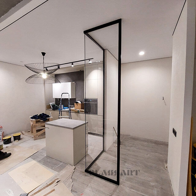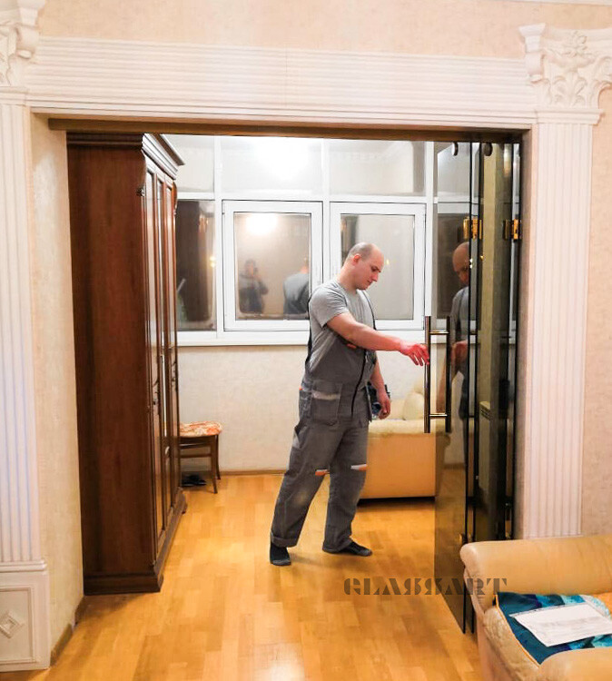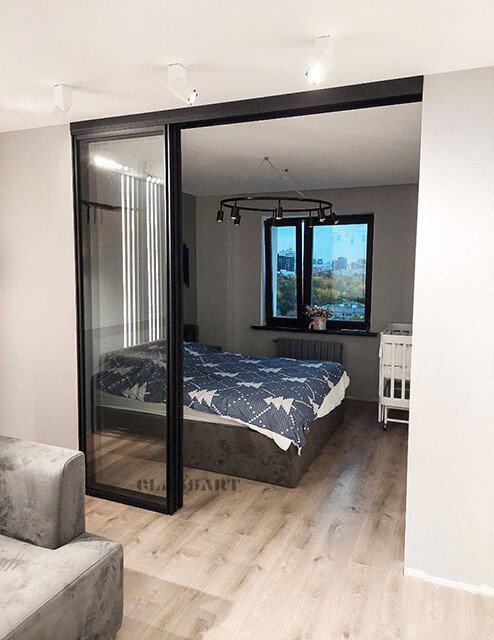 Перегородки и двери могут быть распашными, раздвижными. Перегородка представлена в шоу-руме, будем рады вас видеть.