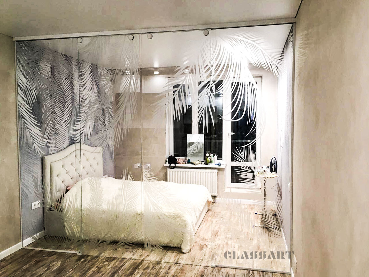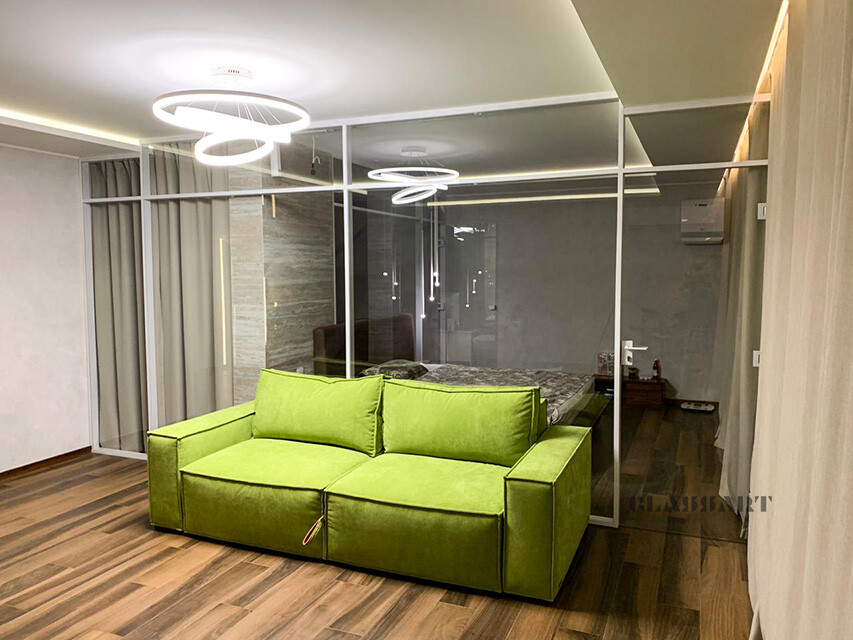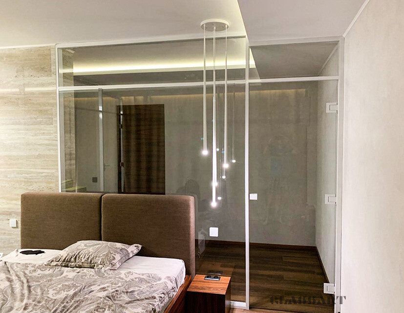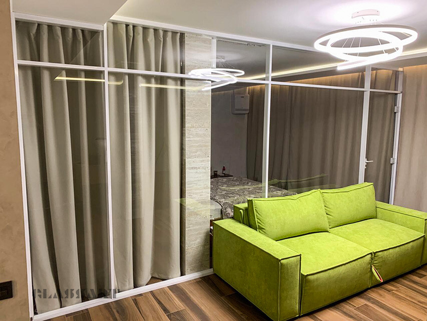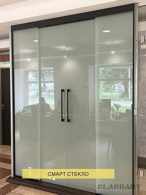 Раздвижная перегородка со смарт стеклом (умное стекло), стекло с изменяемой прозрачностью. Smart Glass – это инновационная разработка, которая позволяет регулировать степень прозрачности стекол.