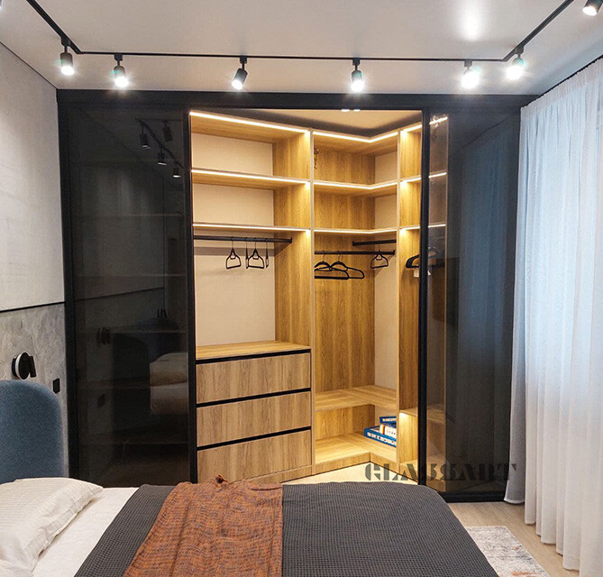 Перегородку такого конструктива можно использовать для зонирования в комнате, в проем, в гардеробную.