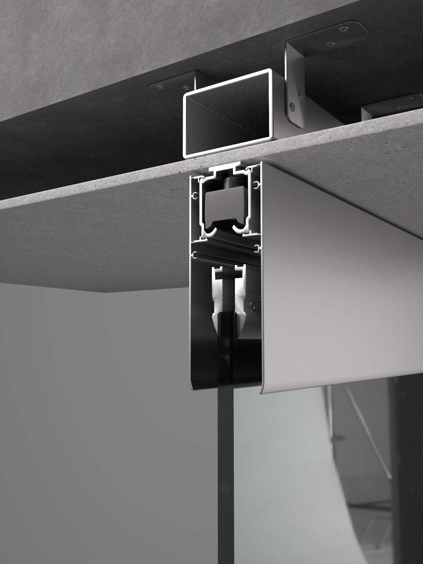 Раздвижная подвесная система Ducasse. Беспороговая система. Бесшумное плавное скольжение.