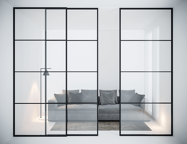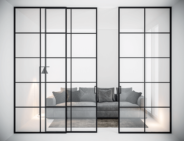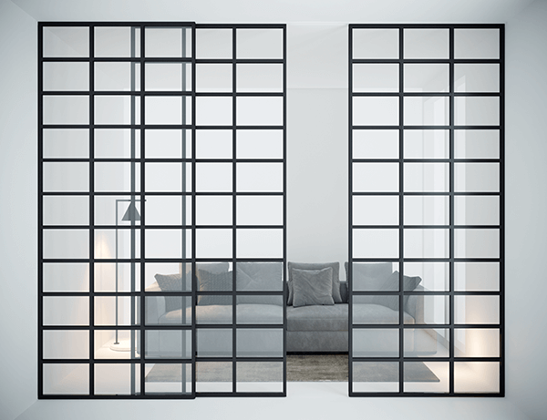 Раздвижная перегородка в стиле лофт с синхронным открыванием дверей
