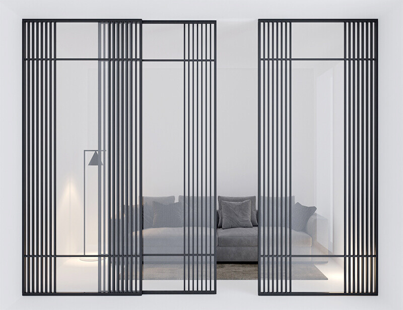 Раздвижная межкомнатная перегородка с рифленым стеклом для зонирования