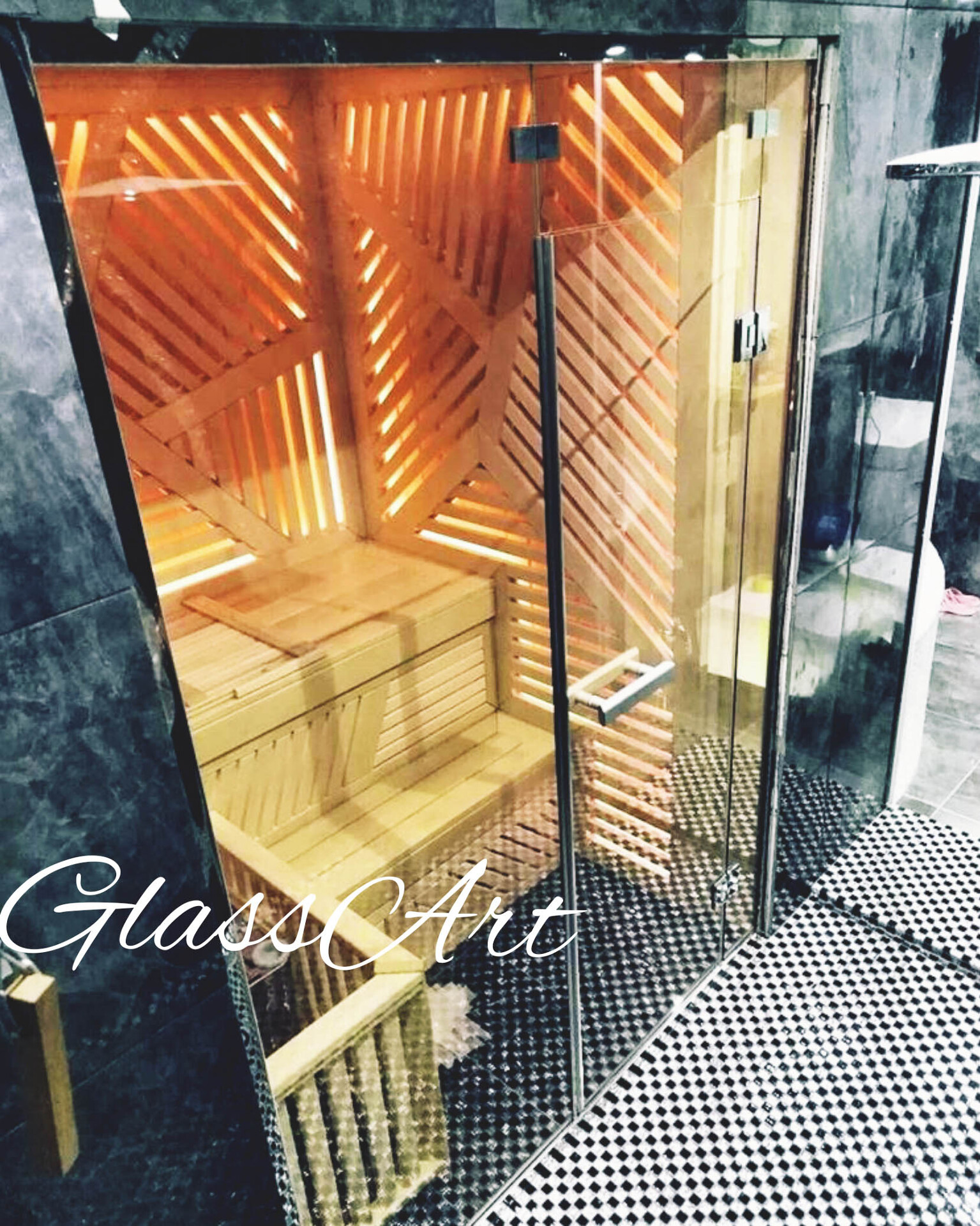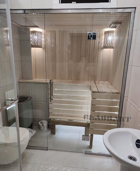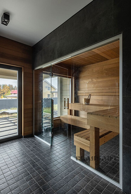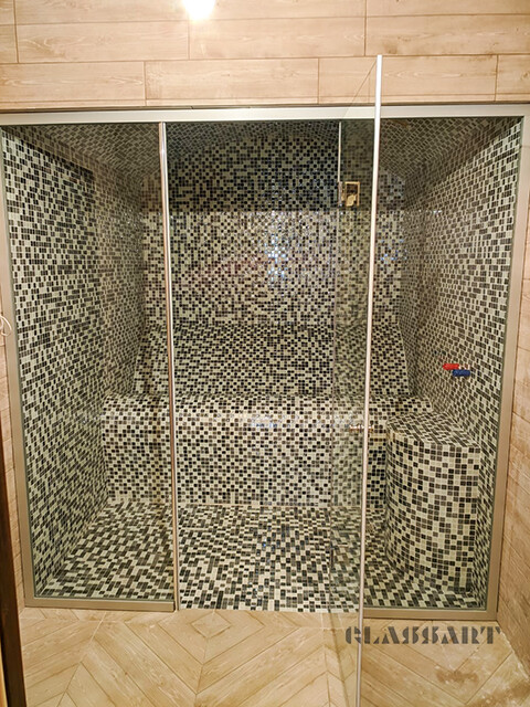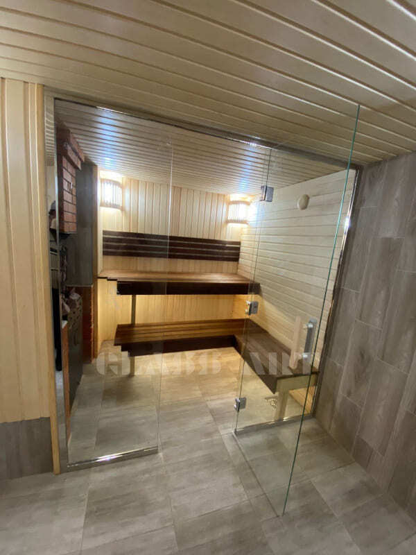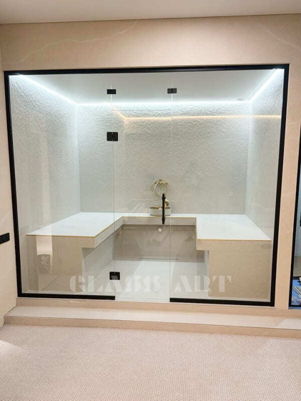 Закаленное стекло сохраняет свои свойства при температуре до 760 ºС, поэтому оптимально для использования в парных.