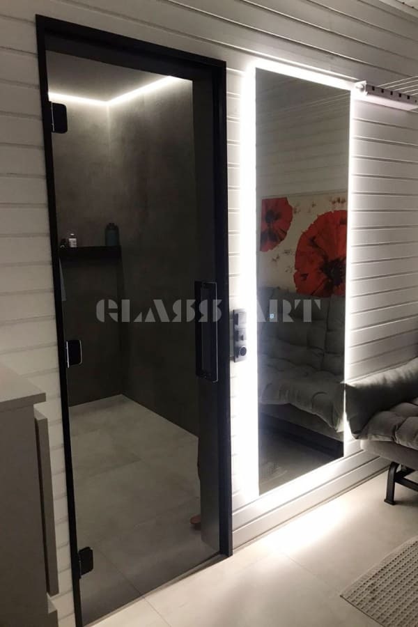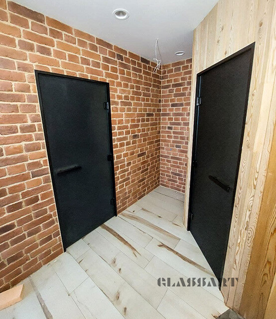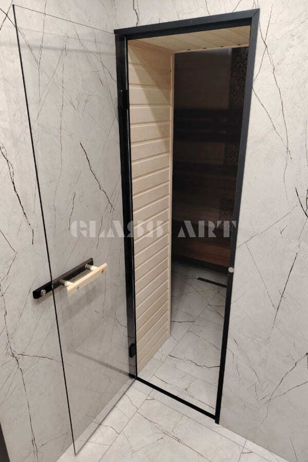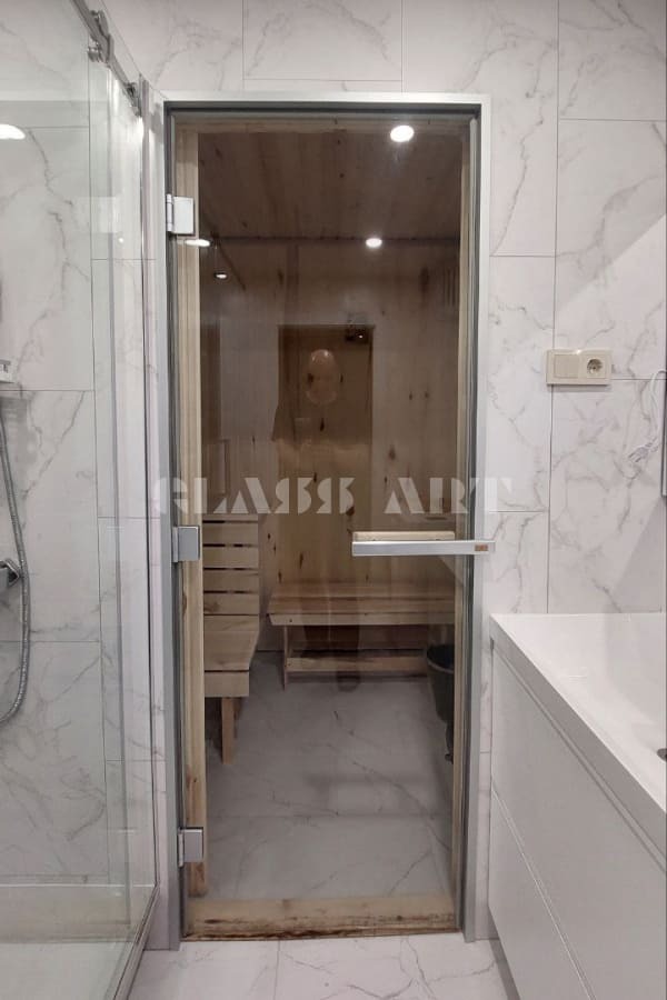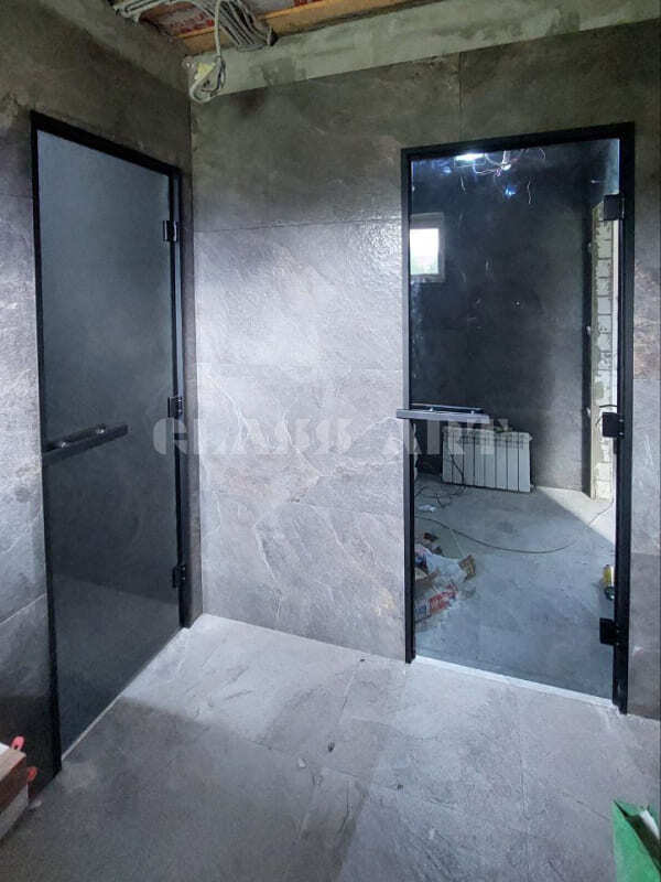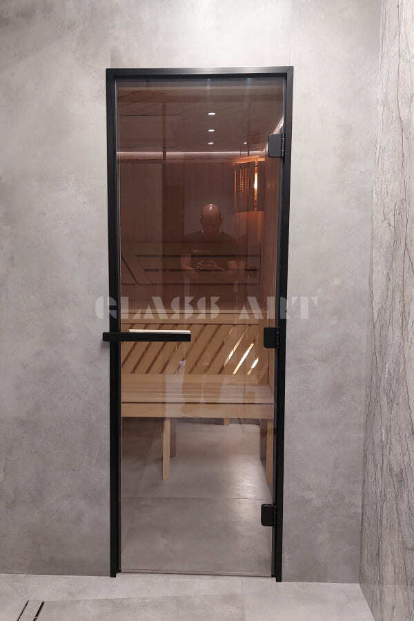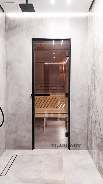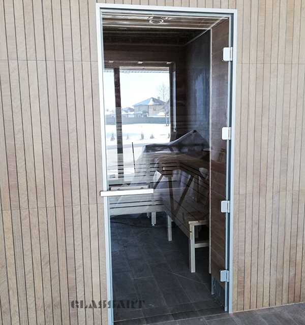 Наши стеклянные двери для бани и сауны с алюминиевым коробом имеют ряд преимуществ перед деревянными: