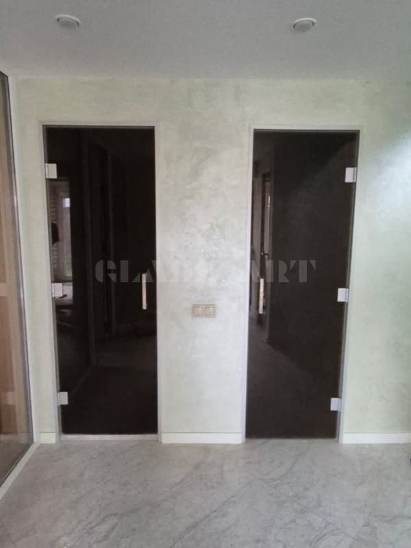 Геометрия стеклянных дверей не меняется ни от влажности, ни от температуры. Стабильность размеров стеклянных межкомнатных дверей позволяет использовать их во влажных помещениях: в ванных, душевых, бассейнах, зимних садах, парилках. Герметично зафиксированное стекло отлично сберегает тепло, изолирует от шума. Для повышенной прочности используются специальные, для освещения смежных комнат - прозрачные, для приватности - тонированные или цветные стекла.