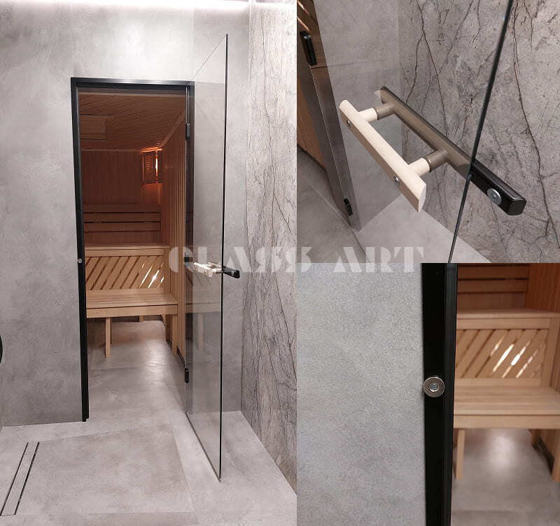У нас вы можете купить двери в сауну, баню, парилку, хамам или в помывочную под заказ по индивидуальным размерам. Стеклянные двери идут в алюминиевом коробе. Возможно использование разных вариантов ручек - скоба с магнитом, скоба с шариковым стопором или нажимная ручка (только для помещений с низкими температурами, например, для помывочных).