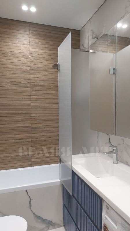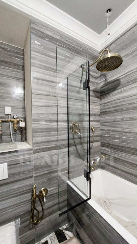Для тех, кто предпочитает удобство и экономию пространства, отличным вариантом станут раздвижные стеклянные шторки, которые устанавливаются по всему периметру ванной и полностью защищают от протекания воды.