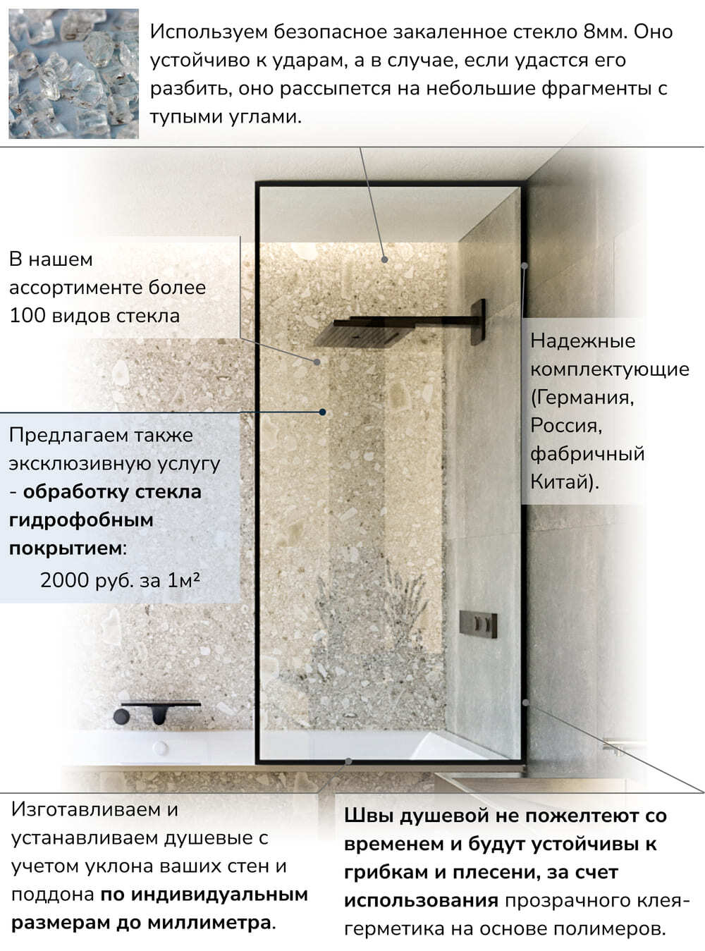 | При изготовлении душевой учитываются индивидуальные моменты (уклон стен) | ||