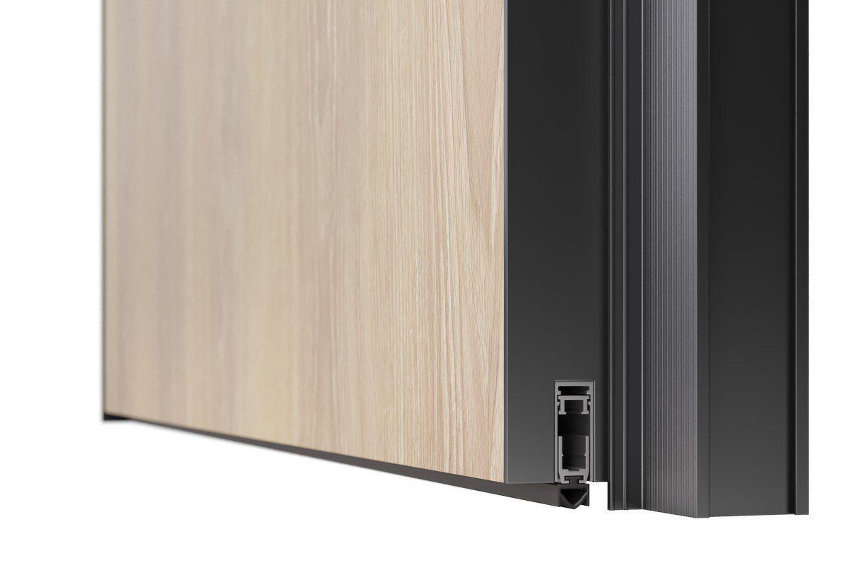 Дверное полотно на алюминиевой раме толщиной 42 мм. Решение не имеющее аналогов на рынке с прямым и реверсивным открыванием.