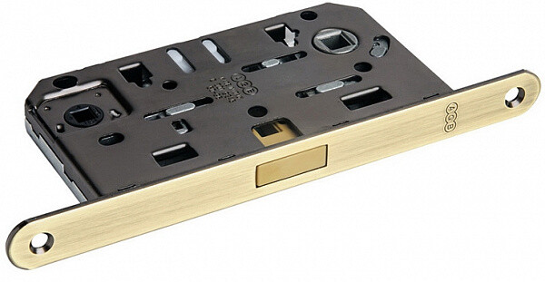 При открытой двери защелка втянута внутрь замка, при закрытой двери язычок сам втягивается внутрь ответной части и удерживает дверь.