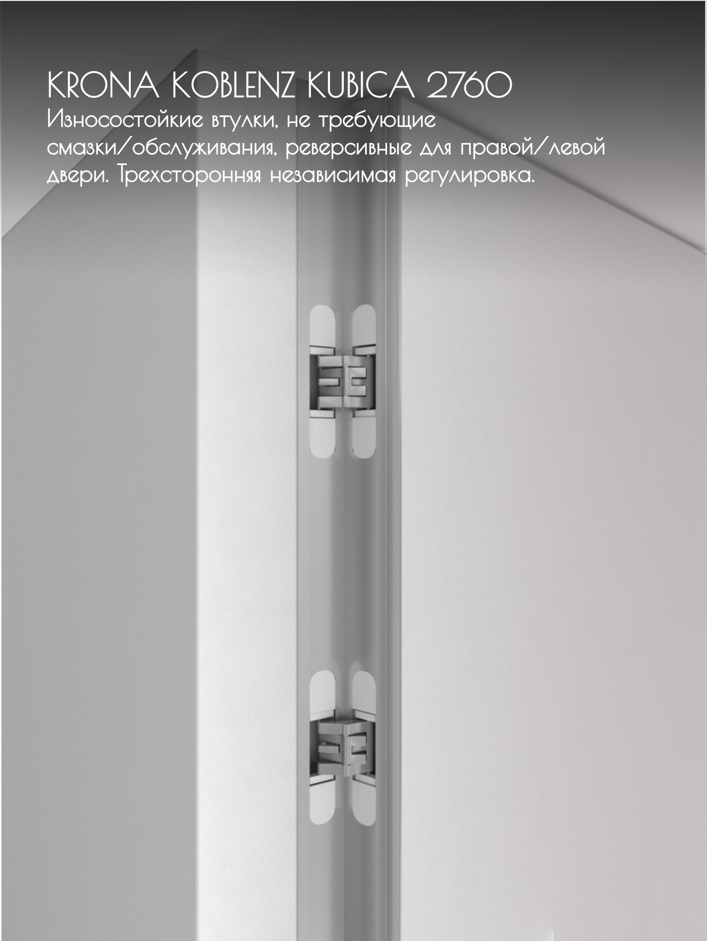 Скрытый доводчик обеспечивает медленное закрытие двери.